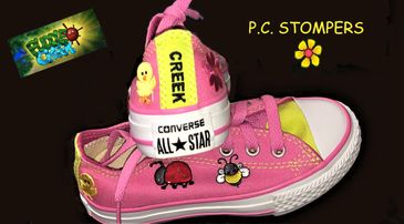 stands by my side wearing a pink dress, a custom pair of Puddle Creek Converse (PC Stompers) and a hat. She's the cutest Frenchton ever, and one of my models for the Puddle Creek Collection of clothes, shoes, pillows, toys and many other products. Sometimes she gives me a little attitude. But... boy does she know how to work me. Full disclosure, I have been known to bribe her with a few dog cookies. Don't tell her mom and dad though.